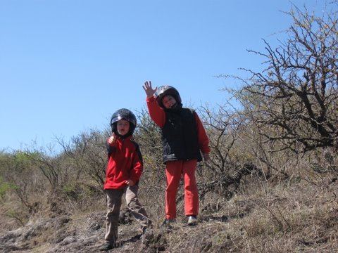 muchachos, uno haciendo tapas de revista, el otro me hace cuernitos, el otro me enseña como se transforma el cuadri en moto de agua y Miguel dejalo ahi, si si en el rio, no estan haciendo merito para ganarse la super pastilla danonino, nos vemos amigos.