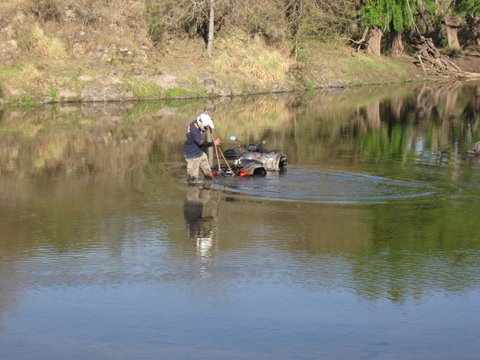 Para los que preguntaban ¿qué pasa cuando se te hunde el quad? en esta travesía les di el ejemplo, jajajaja, lo que paso es que no funciono el motorcito fuera de borda y ademas me parece que fue la venganza de Miguel, que a pesar de eso intento rescatarme pero no pudo.