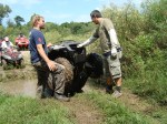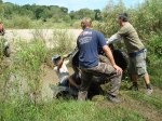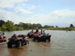 La picada y el Badeo, luego del almuerzo y de concentrarnos en cruzar el río, comenzamos a recorrerlo por la orilla hundiendo los ATV hasta el limite con mucha correntada y  mucha adrenalina.  finalmente conseguimos un lugar mas ancho para cruzar  y nos aventuramos a la correntada con total éxito.