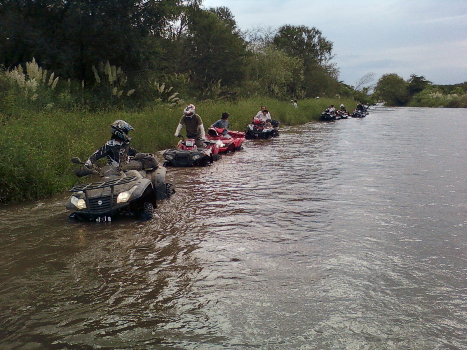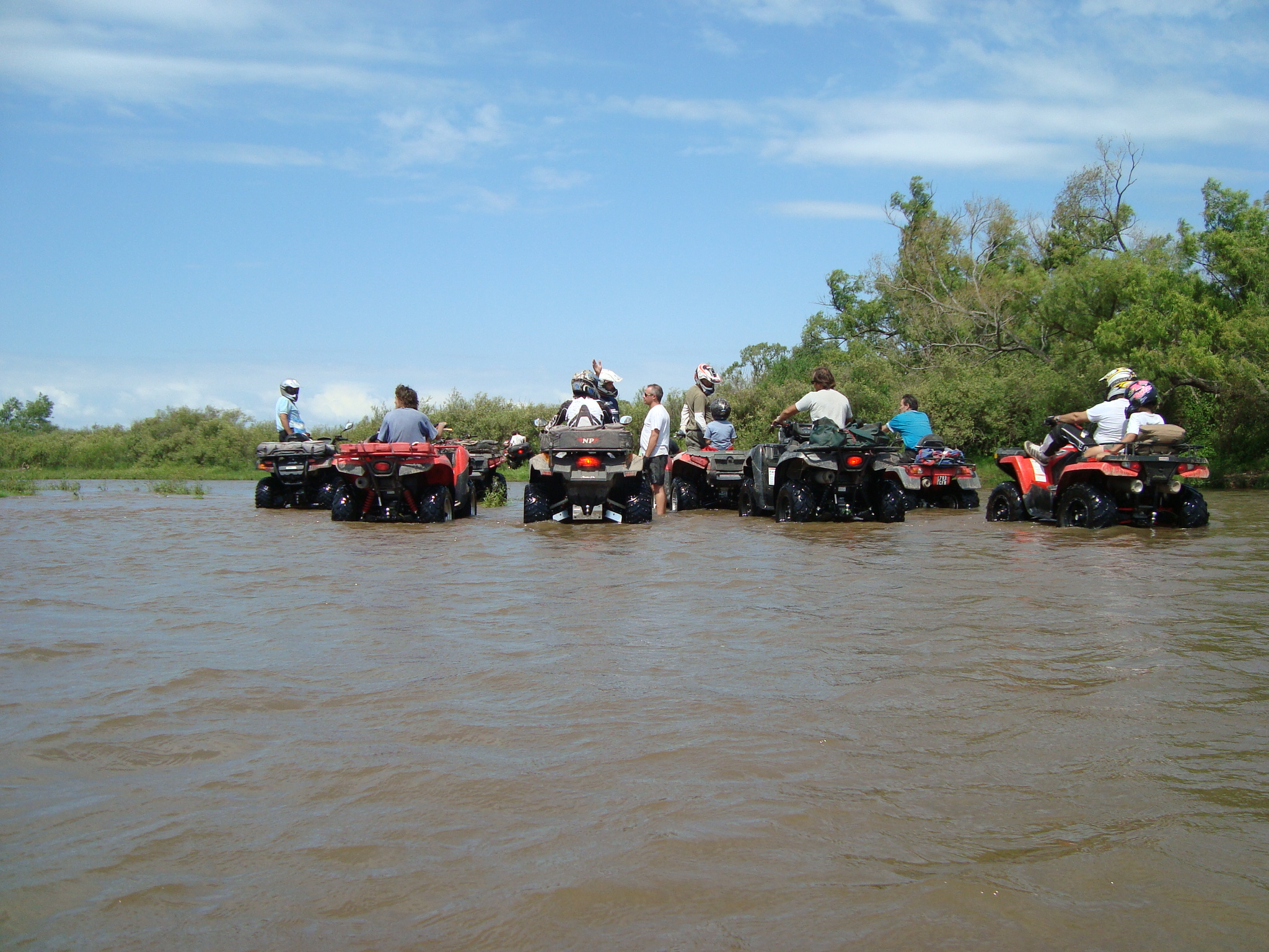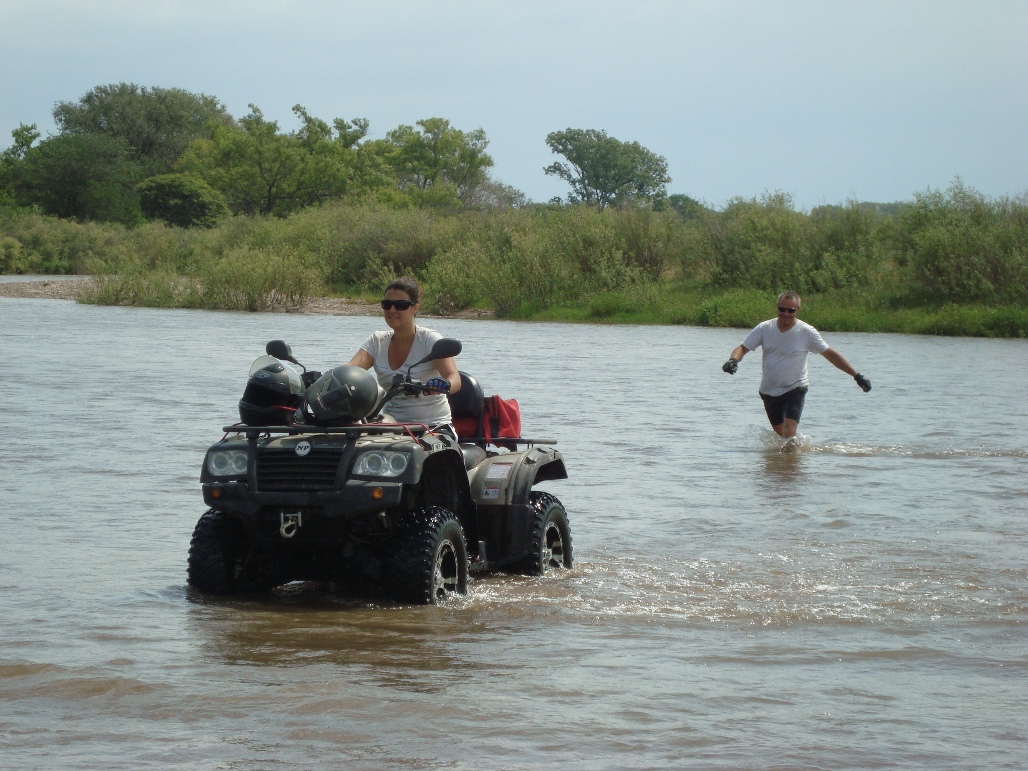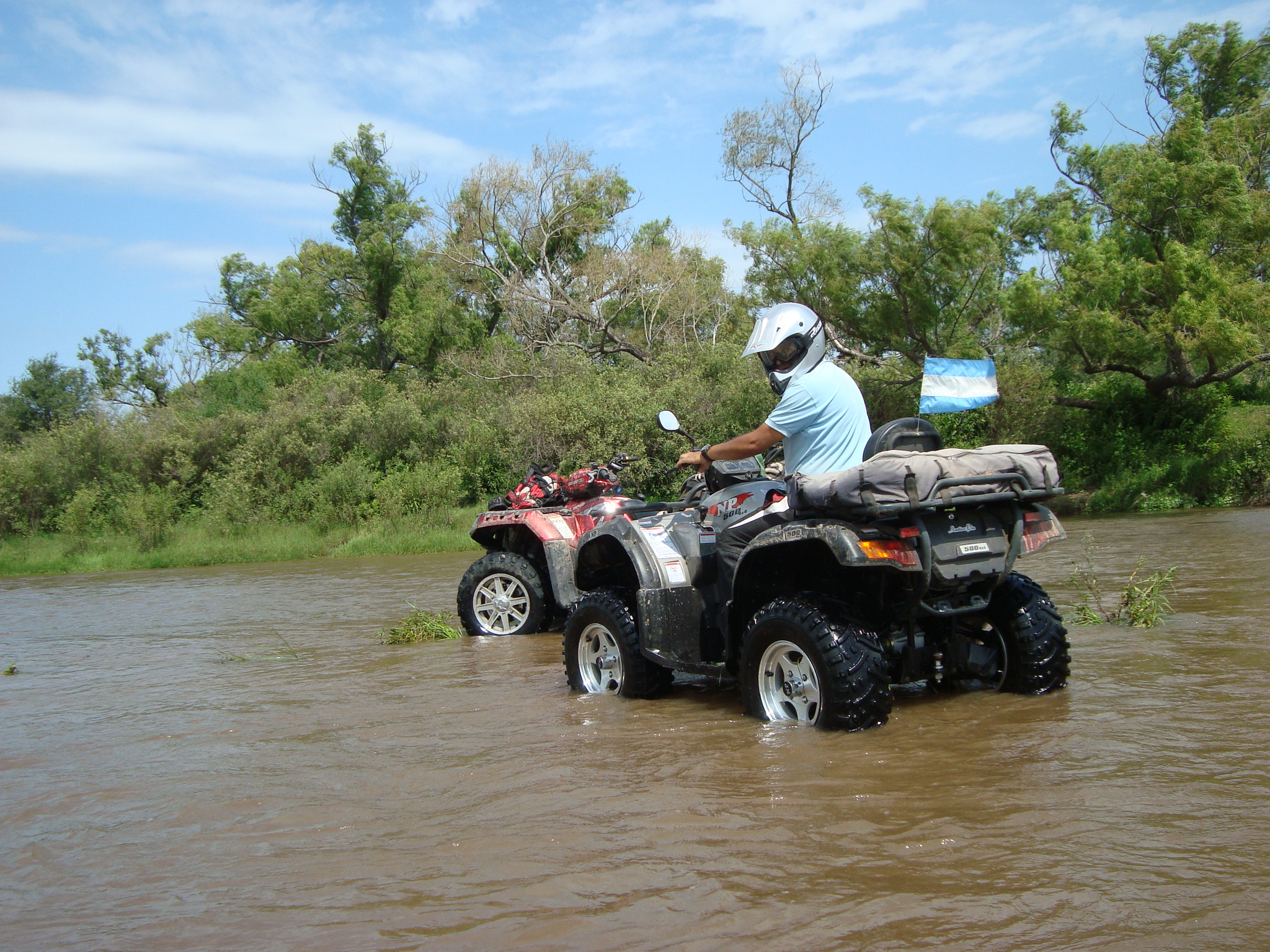 La picada y el Badeo, luego del almuerzo y de concentrarnos en cruzar el río, comenzamos a recorrerlo por la orilla hundiendo los ATV hasta el limite con mucha correntada y  mucha adrenalina.  finalmente conseguimos un lugar mas ancho para cruzar  y nos aventuramos a la correntada con total éxito.