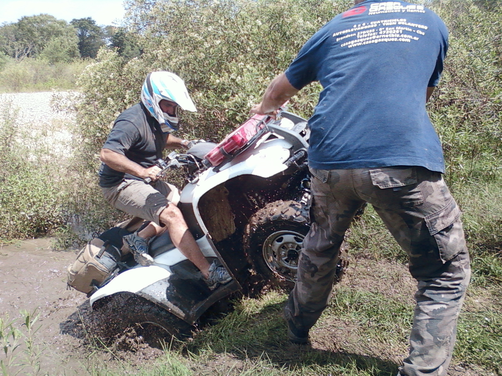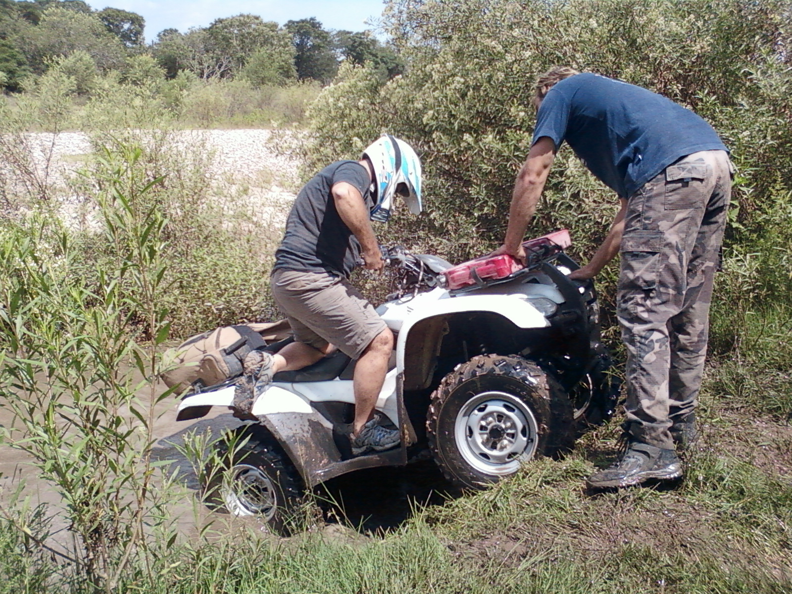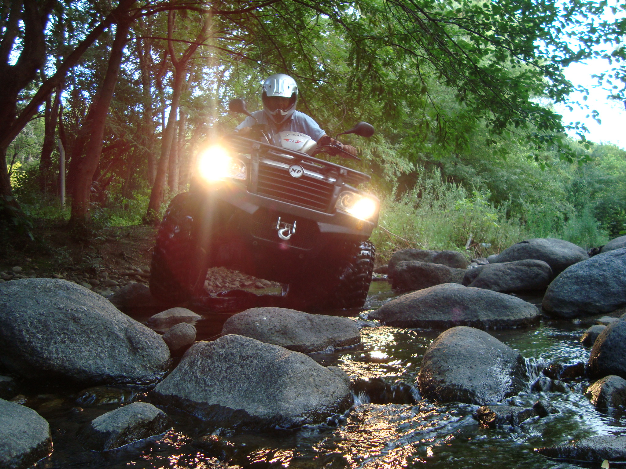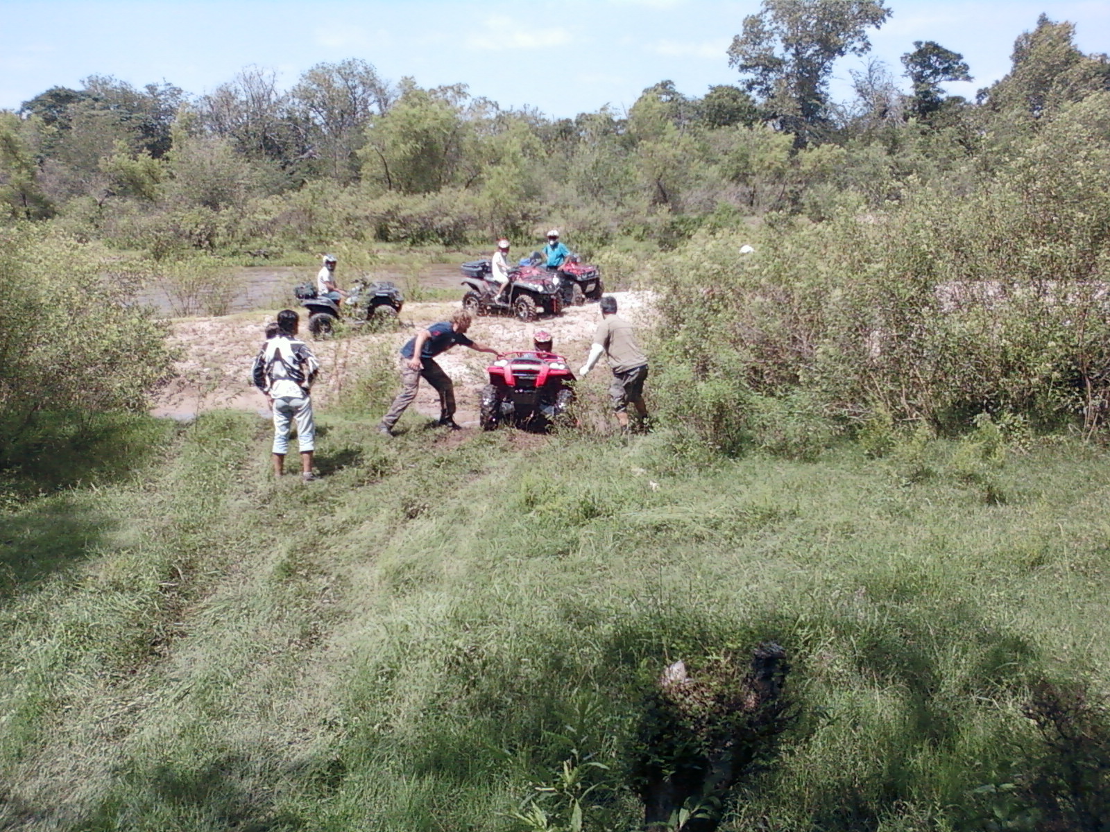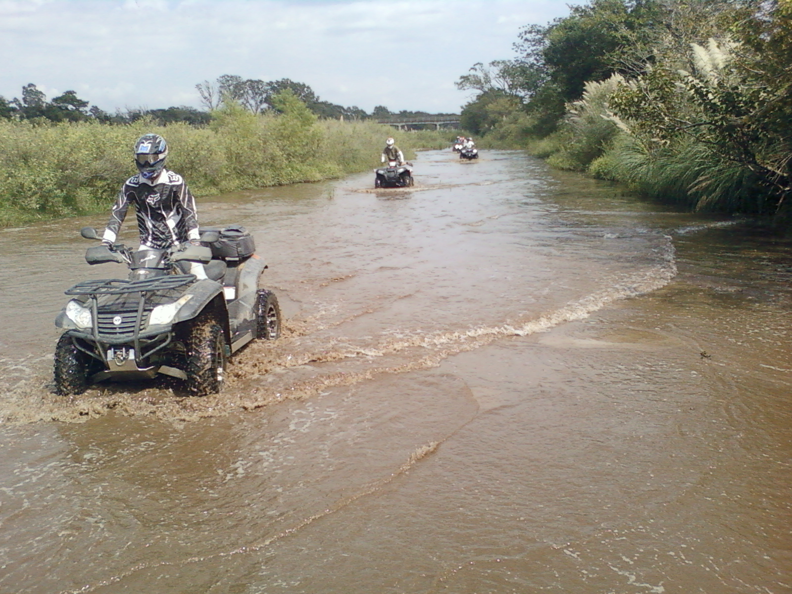 La picada y el Badeo, luego del almuerzo y de concentrarnos en cruzar el río, comenzamos a recorrerlo por la orilla hundiendo los ATV hasta el limite con mucha correntada y  mucha adrenalina.  finalmente conseguimos un lugar mas ancho para cruzar  y nos aventuramos a la correntada con total éxito.