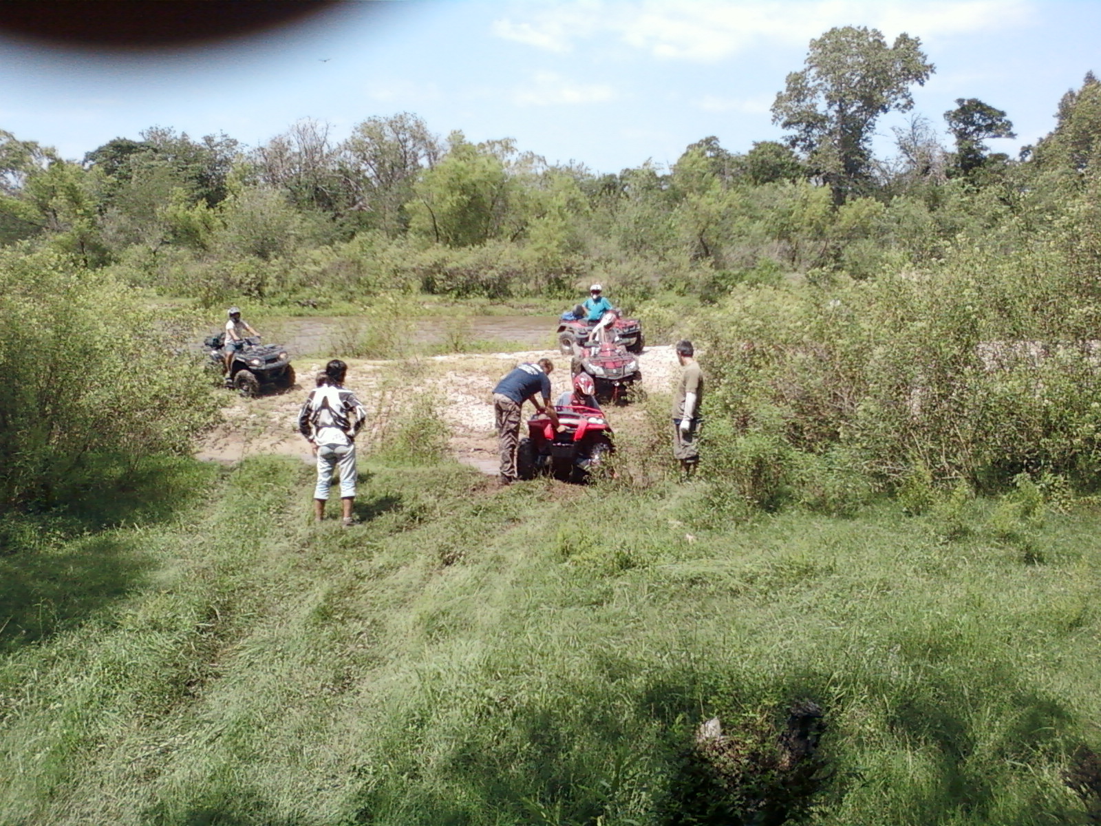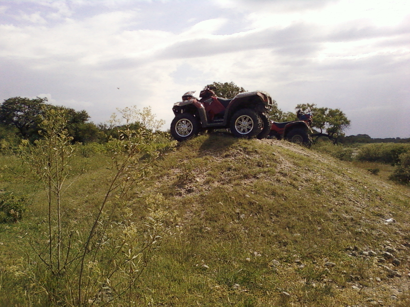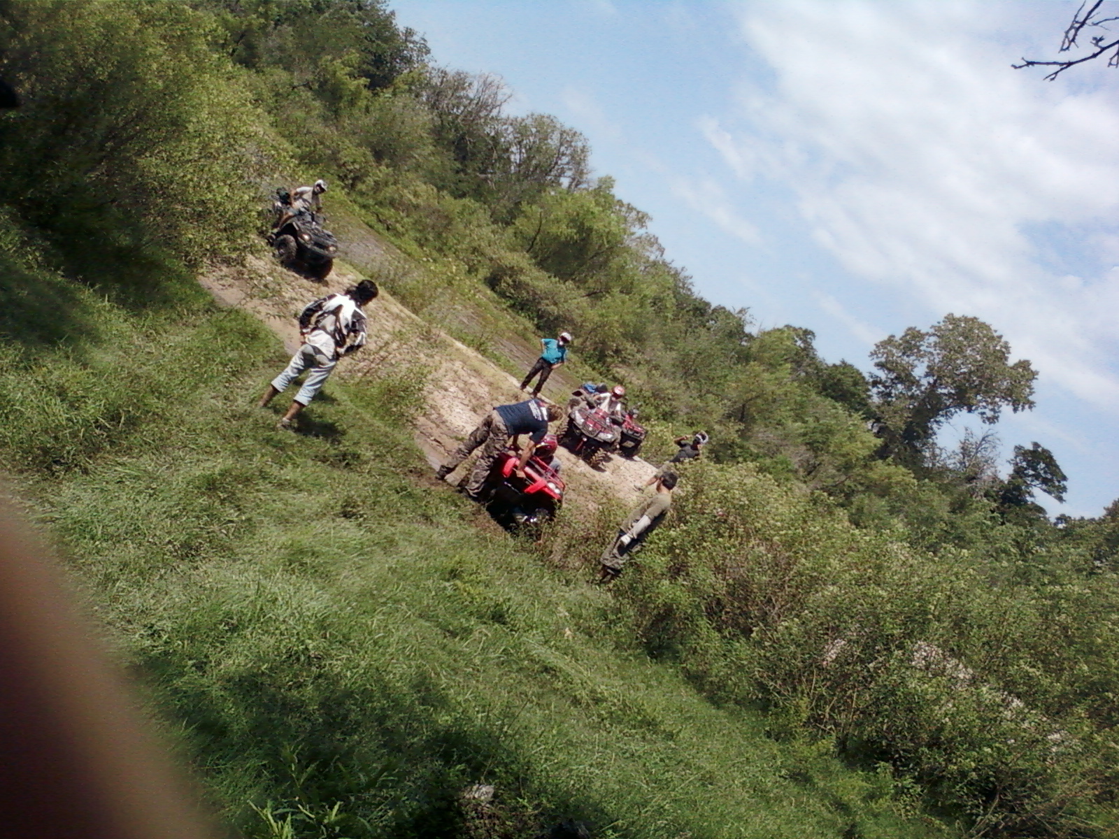 Primer escalón, me faltaron tacos, me lo vendieron fallado,jaajajaja. un escalón bastante interesante apto para vehículos largos con barro y pasto mojado,  este fue el lugar donde renegué un buen rato y finalmente no subí, jaja. pero el orgullo fue que si pudo el otro pibe que tenia un cuadri rojo, no te ilusiones Pablo , estoy hablando del hondita del Guille, jajaajjaja.  Algunos quedaron posando para la foto y con bronca pero bueeeee.