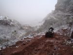 Embarradas y quedadas muy divertidas utilizando todos los métodos de rescates que te imagines, cadenas entre 2 y 3 atv, inclinar el vehículo para que se despegue, hacer plataformas con ramas para no hundirnos y hasta hacer girar sobre si el atv para sacarlo de un pantano. Una que me perdí es la de correr al lado del cuadri para no hundirse, jajaaj.Luego de la diversión del barro ingresamos por un camino de montaña que ascenderíamos unos 1500 mts. en 8 km., para tener una magnitud de la trepada es que en 100mts. subíamos 19 mts. aprox.