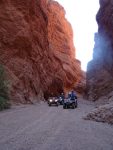 Segundo Día: Por la ruta 40 en San Carlos ingresamos al camino por donde había pasado el Dakar, pasando por la finca de don Alberto nos dirigimos por el campo y por un río seco hasta una quebrada en la que aparenta no tener salida, con las palabras mágicas de nuestro amigo Alibaba «Abrete sésamo» el camino fue apareciendo entre una quebrada impresionante de unos 4 mts. de ancho.