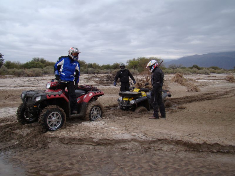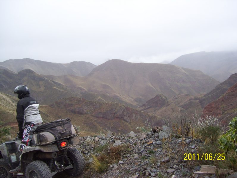 Embarradas y quedadas muy divertidas utilizando todos los métodos de rescates que te imagines, cadenas entre 2 y 3 atv, inclinar el vehículo para que se despegue, hacer plataformas con ramas para no hundirnos y hasta hacer girar sobre si el atv para sacarlo de un pantano. Una que me perdí es la de correr al lado del cuadri para no hundirse, jajaaj.Luego de la diversión del barro ingresamos por un camino de montaña que ascenderíamos unos 1500 mts. en 8 km., para tener una magnitud de la trepada es que en 100mts. subíamos 19 mts. aprox.