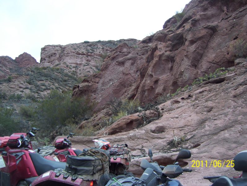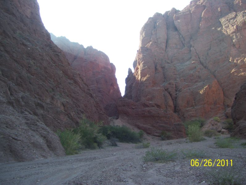 Segundo Día: Por la ruta 40 en San Carlos ingresamos al camino por donde había pasado el Dakar, pasando por la finca de don Alberto nos dirigimos por el campo y por un río seco hasta una quebrada en la que aparenta no tener salida, con las palabras mágicas de nuestro amigo Alibaba «Abrete sésamo» el camino fue apareciendo entre una quebrada impresionante de unos 4 mts. de ancho.