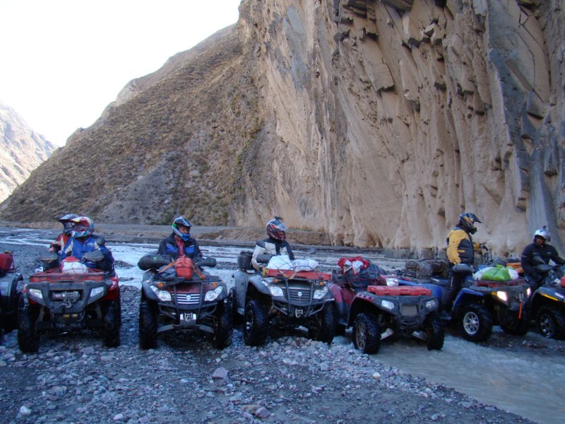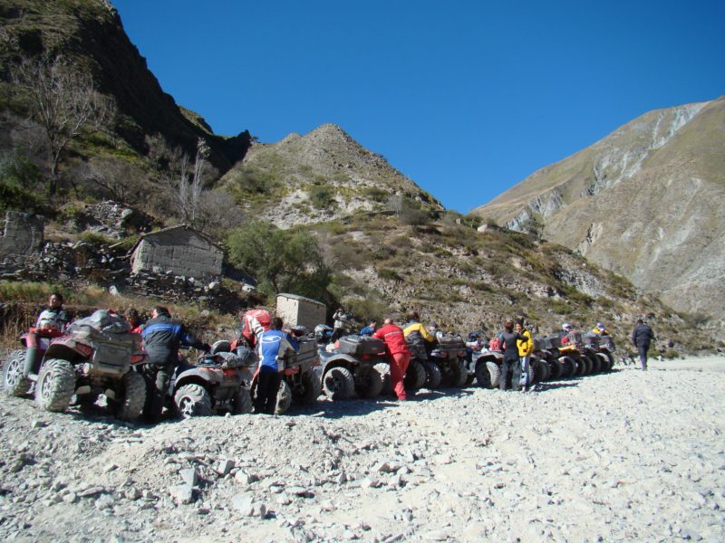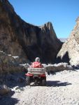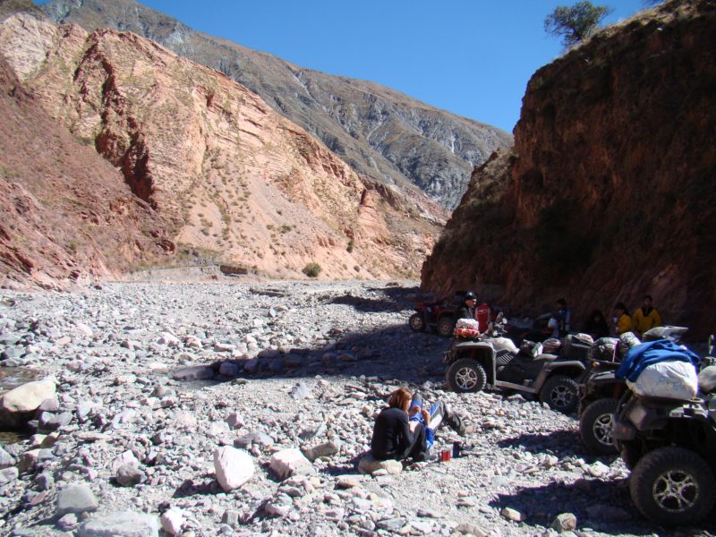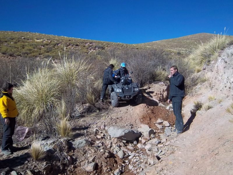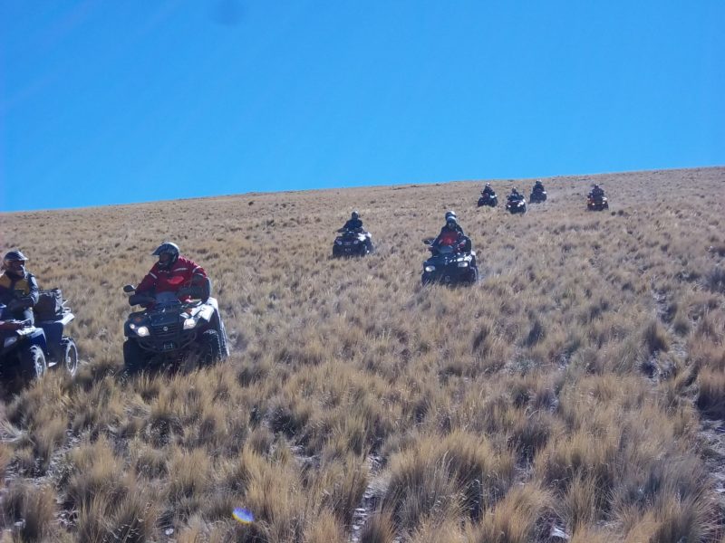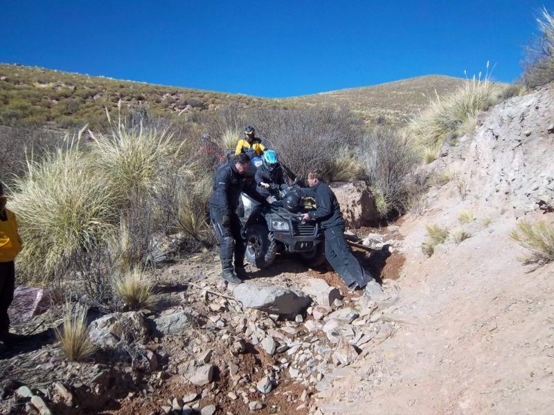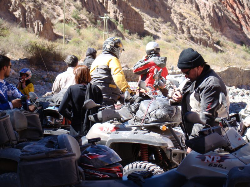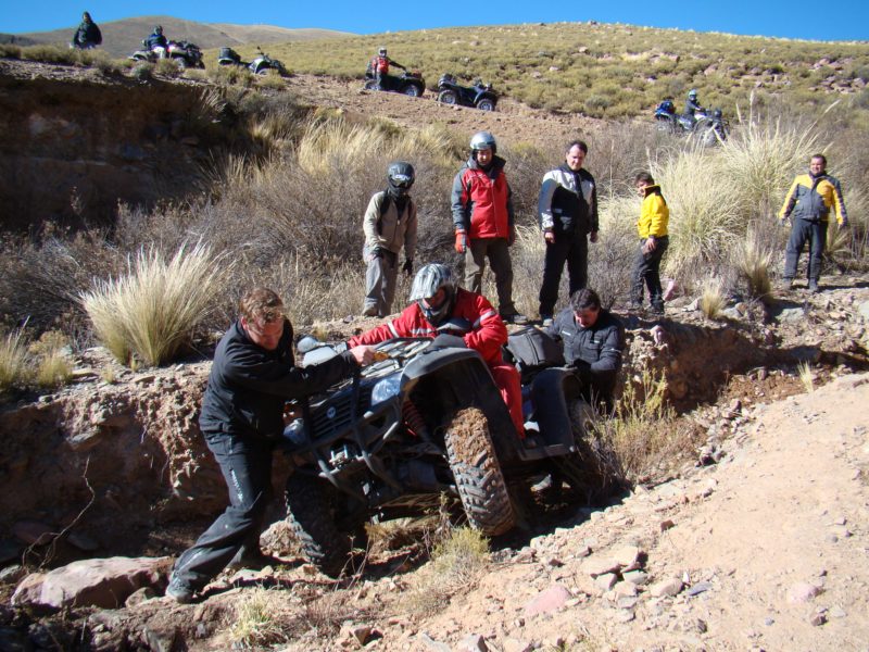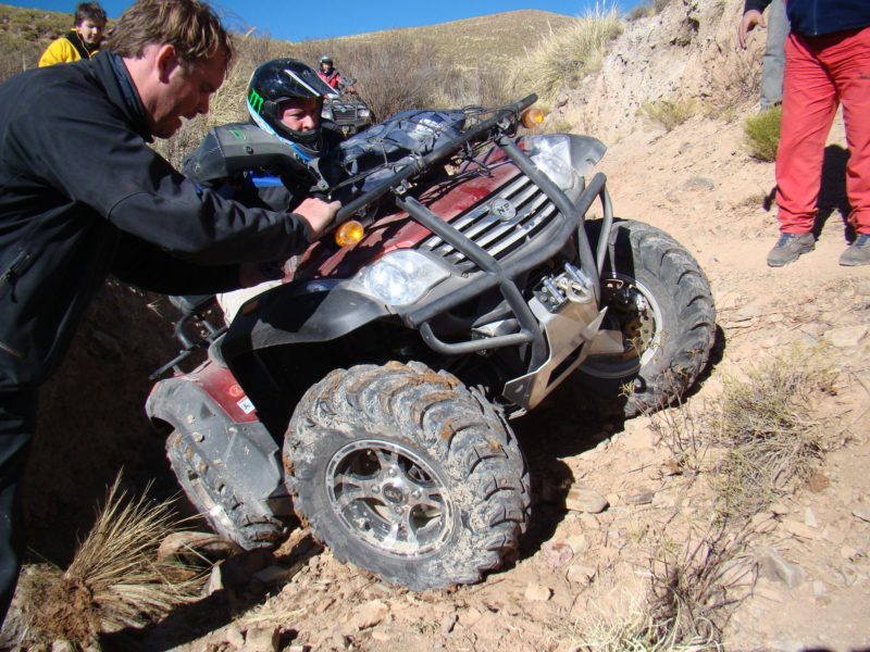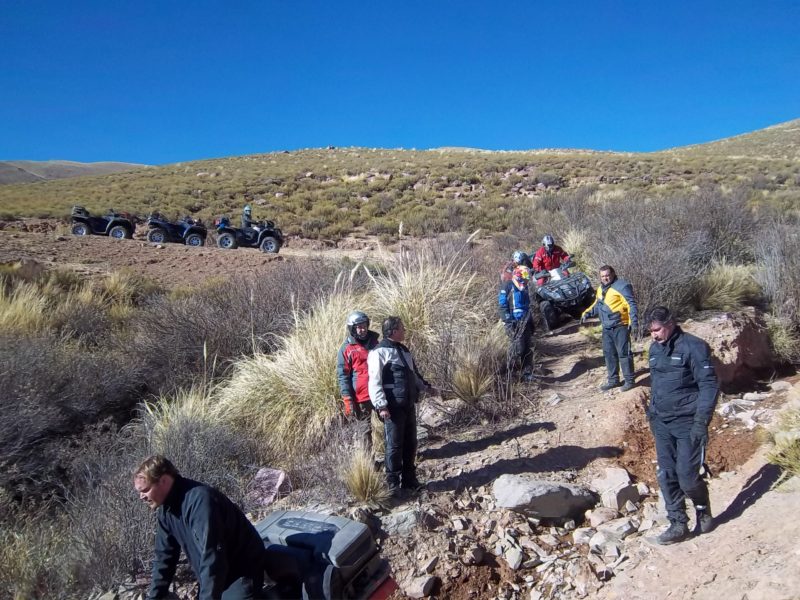 El primer día salimos de Humahuaca Subimos a mas de 4000 msnm, en donde pusimos a prueba la trepara sobre hielo, Caperucita muy confiada del bosque se atrevió a subir por la empinada subida de hielo y con los ojitos saltones se resbalo sobre el Diablito que lo esperaba con los brazos de su Polaris abierto, luego aparecia en escena el Doc Brown de Volver al futuro con toda la tecnología a bordo quien insistió en subir, me parce pero las ruedas giraban y no avanzaba, el Profesor Neurus también se hizo presente en la primer prueba. jjajaaj que afilado estoy para los apodos.