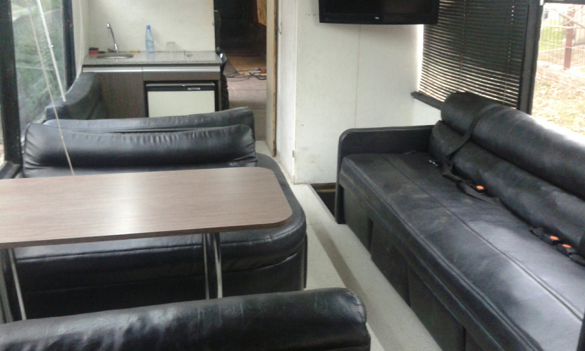 Por un lado la comodidad que ofrece un Motor home; Video, lcd 34 pulgadas, aire acondicionado, baño, 2 habitaciones de 2 plaza tipo camarote, amplio living para 12 adultos con sillón cama, mesa y cocina con bacha.